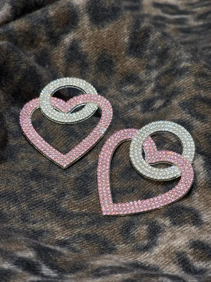 گوشواره قلب و دایره نگین ریز صورتی و سفید